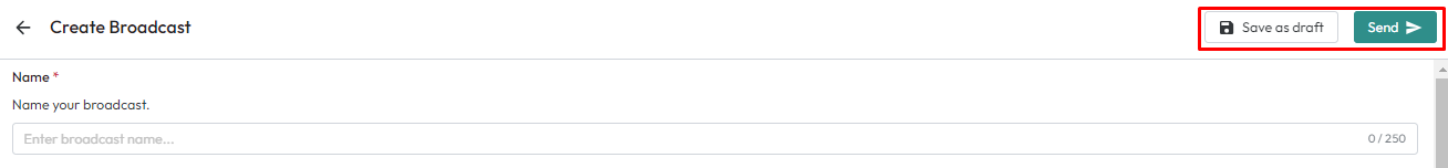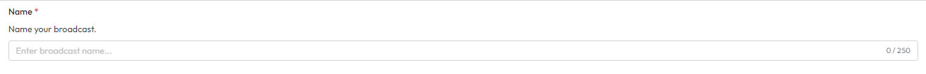- Enter the name of the broadcast you want to create. The maximum number of characters for the broadcast name is 250.