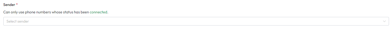 - Select the business number that will be used to send broadcast messages; only numbers with a 'connected' status can be used. Next to the number, there's an indicator to see whether the cart and catalog are activated on that number.