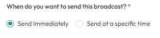 - The last step is to select the time to send the broadcast message. You can choose between sending it right now or at a certain time.